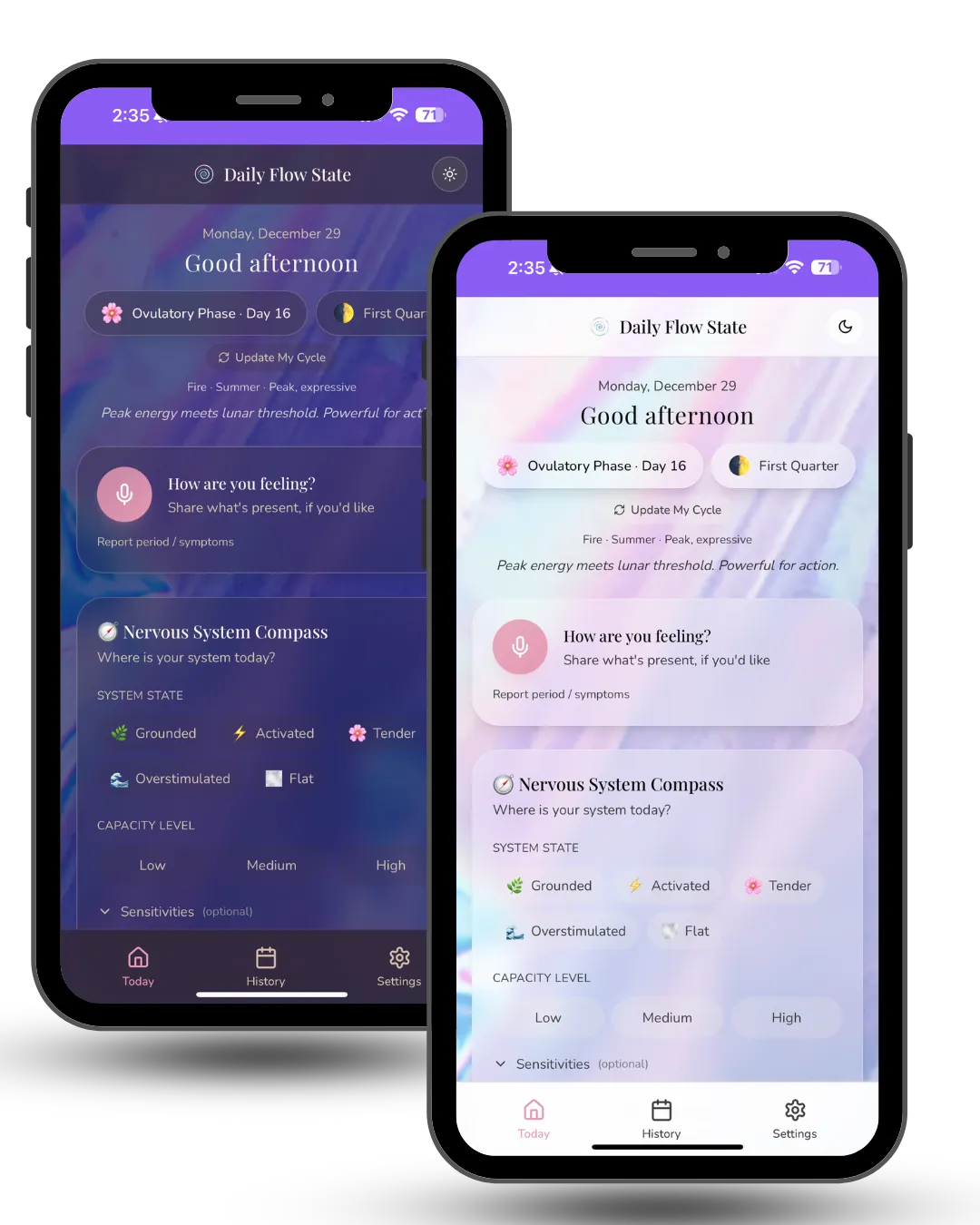 Daily Flow State is a gentle, intelligent wellness companion designed to help you stay connected to your body in the middle of real life.
